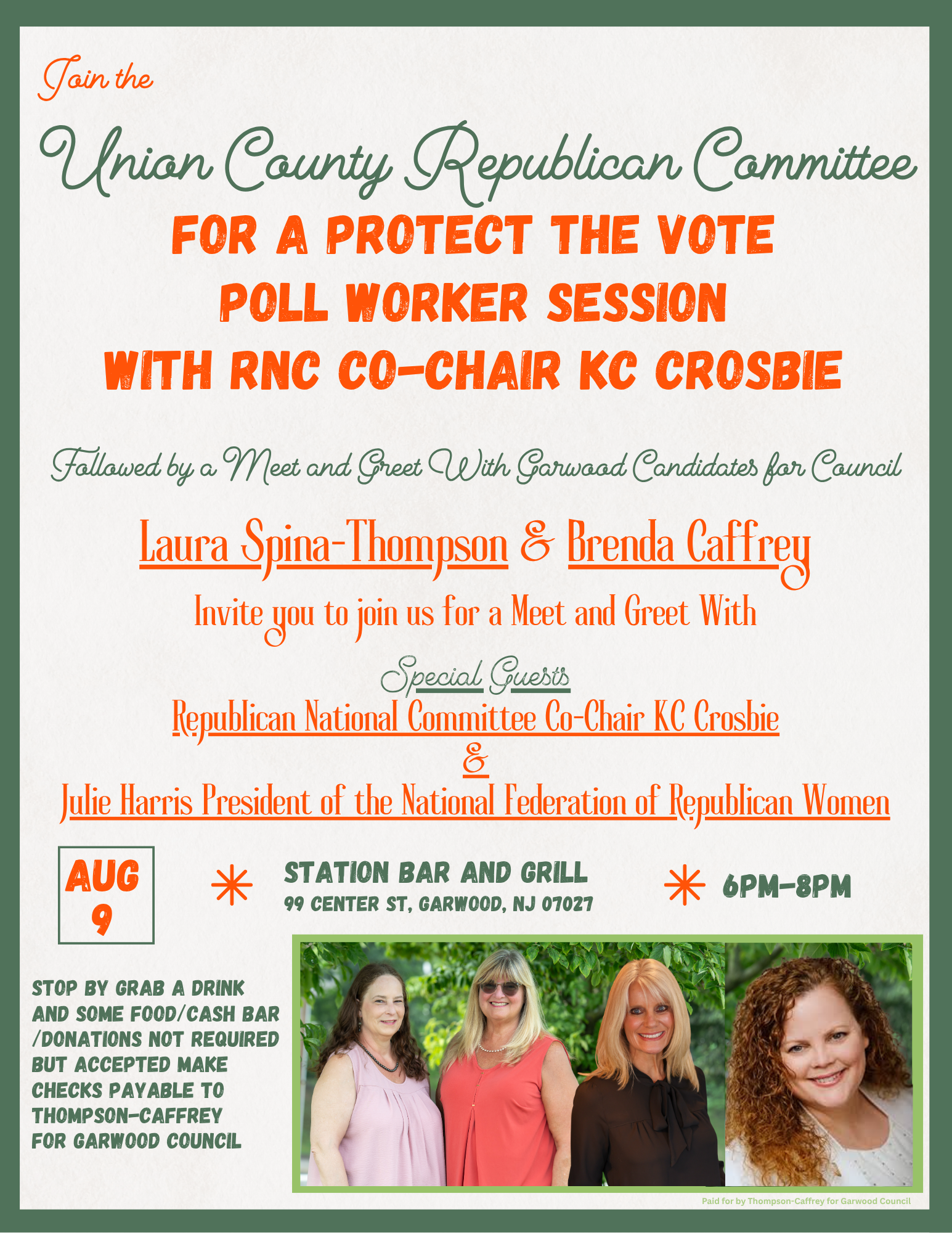 August 9 @ 6:00 pm - 8:00 pm Protect the Vote Poll Worker Session Station Bar and Grill 99 Center Street, Garwood, NJ, United States